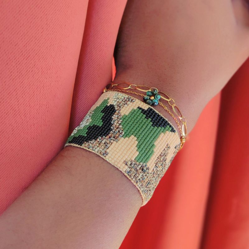 Créez votre manchette avec ce motif camouflage en rocailles Miyuki Delica 11/0.